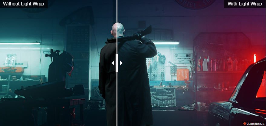 Light-wraps are an effective and underutilized technique that improves the realism of a compositor VFX. These simulate the apparent diffusion of extremely bright lights around a foreground, helping to integrate the composited layer into the background. This visually blends the two different layers, creating a cohesive unified final image.